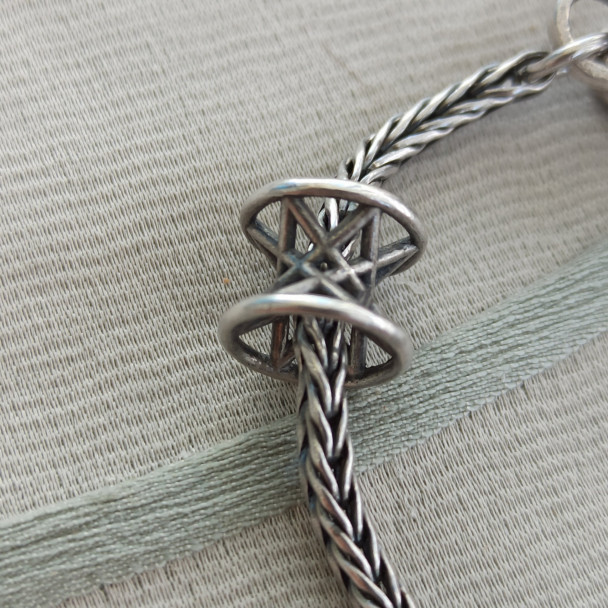 The piece evokes a quiet, magnetic elegance — a silver reliquia where floral and stellar realms entwine. Each bead is a frammento di storia, a fragment of myth rendered tactile.